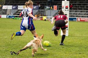 Fotograf Miloš Březina zachytil situaci, kdy se fanynce ragby její pes zapojil do hry