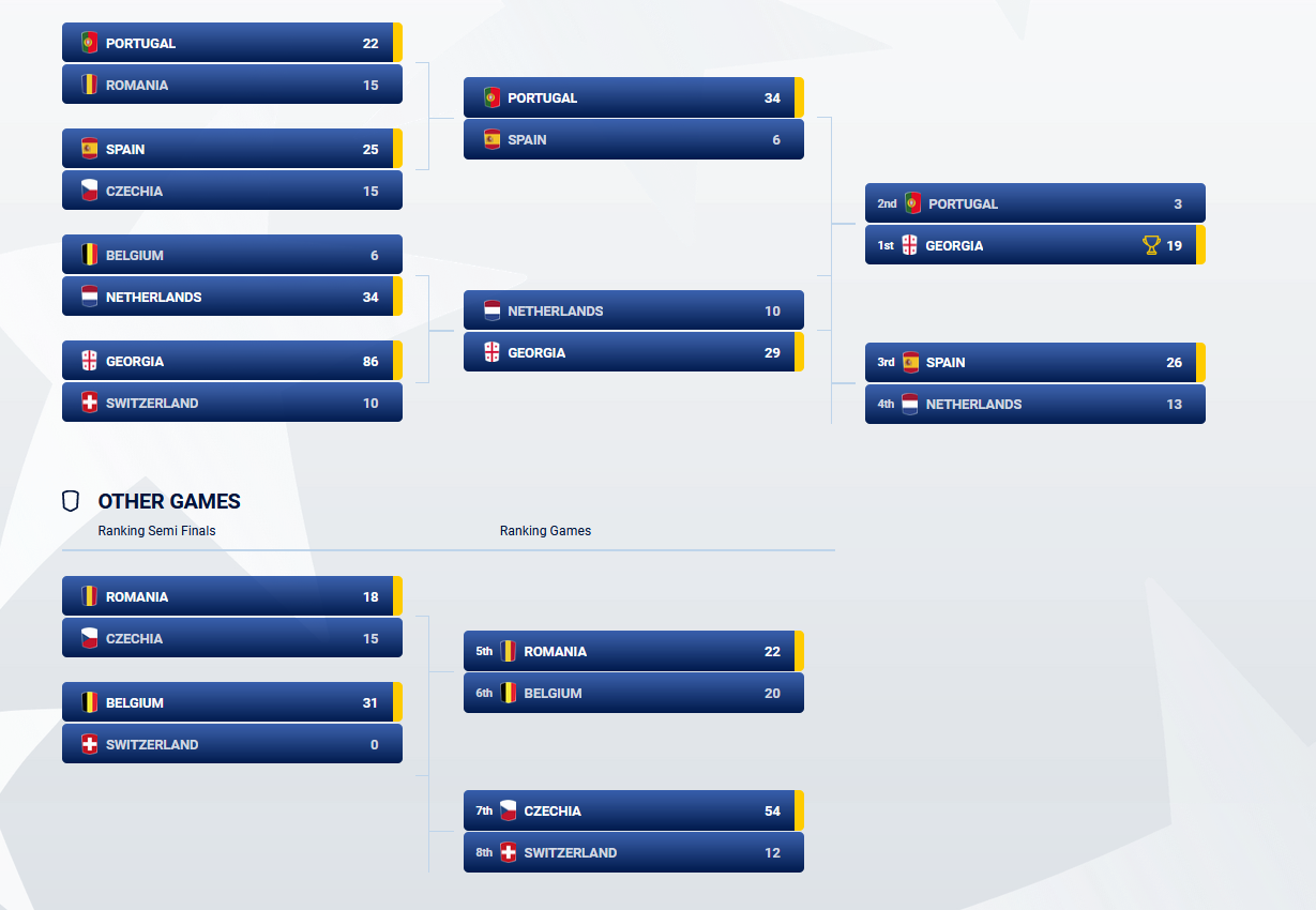Reprezentační týmy Česka do osmnácti let i do dvaceti let se nakonec dočkaly vítězství. Češi své soupeře, kterými v obou utkáních byli Švýcaři, v duelech o sedmé místo v obou střetnutích porazili stejným rozdílem pěti pětek. Osmnáctka Česka Švýcary porazila 54:12 a dvacítka Česka nad borci ze Švýcarska dokonce zvítězila s nulou ve výsledku 34:0.