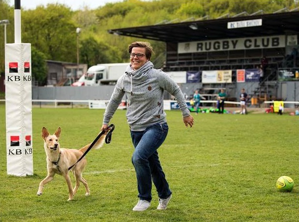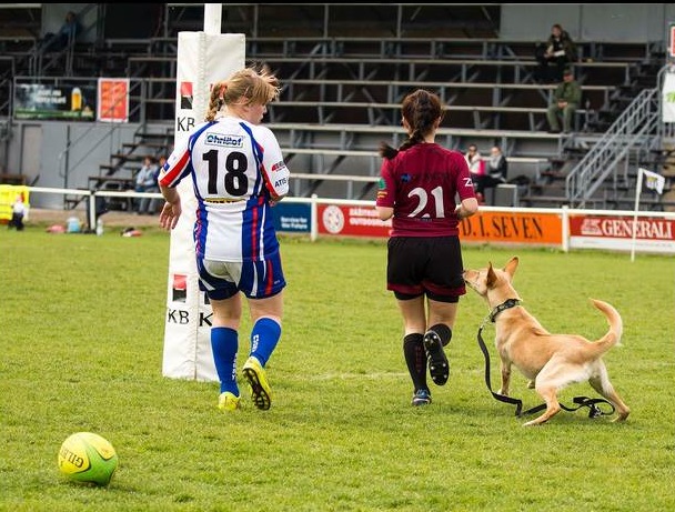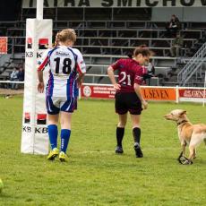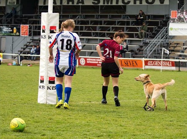 Fotograf Miloš Březina zachytil situaci, kdy se fanynce ragby její pes zapojil do hry