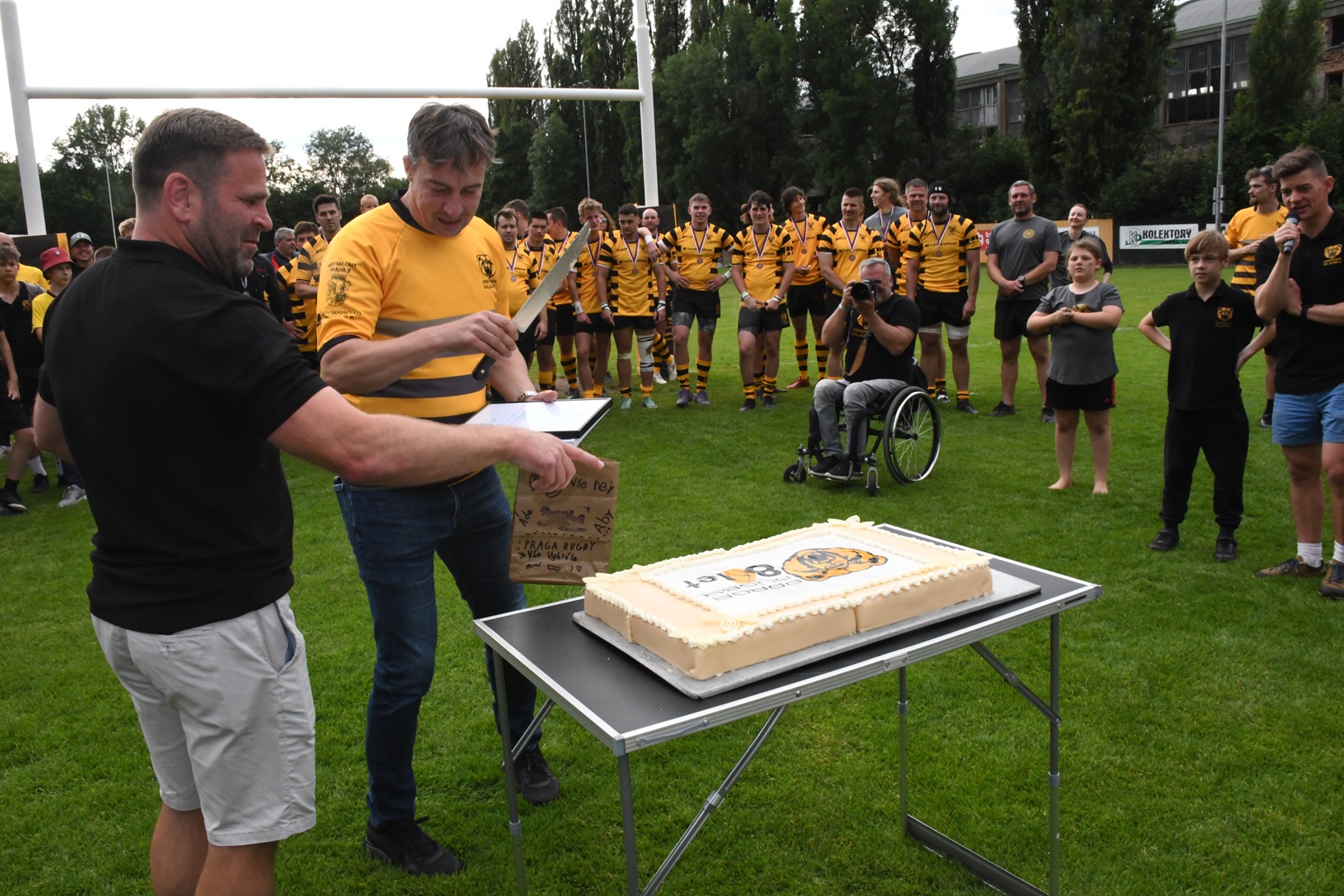 Prahy 9 Tomáš Portlík předali dárky a květiny legendám Pragy, které se narodily před nebo krátce poté od roku 1944, kdy vysočanský ragbyový klub byl založený.