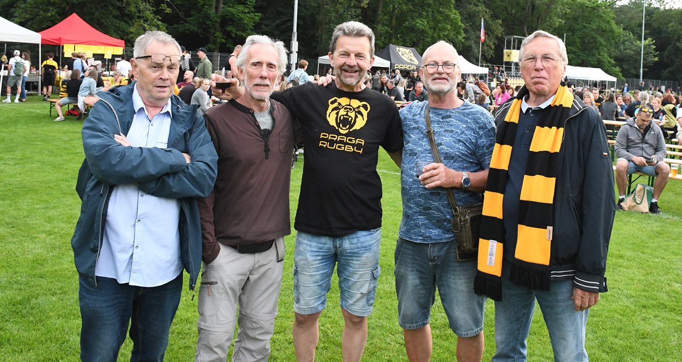 V týmu Old Boys Pragy, který nastoupil proti Czech Stars se v pragovácké sestavě sešli dokonce čtyři prezidenti pragováckého klubu, z nichž dva Miroslav Fuchs a Luděk Kudláček byli v minulém století vyhlášeni dokonce Ragbistami roku. Dále jeden ze čtyř mužů v čele ragbistů Pragy Zdeněk Žák byl na hřišti nejstarším hrajícím hráčem, zato současný prezident Pavel Syrový byl zase z těch všech žijících a na oslavách klubu také hrajících prezidentů nejmladší. Miroslav Fuchs si v útoku zahrál zase se svými synky Jakubem a Filipem, kteří se již věkem stanoveným hranicí 35 let stali rovněž veterány jako jejich tatínek, který je uváděný v klubové kronice coby ragbista, jež v lize za Pragu dosáhl nejvíce bohužel zatím nesečtených bodů.