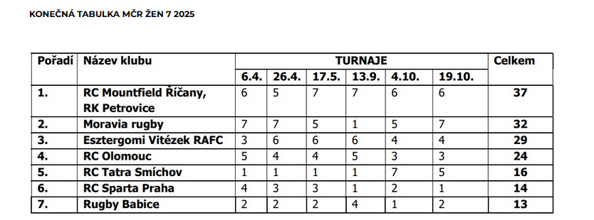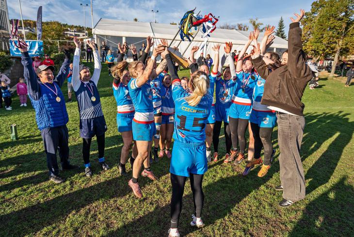 Mistryněmi republiky žen v sedmičkové ragby 2025 se tak staly ženy společného týmu RC Mountfield Říčany/RK Petrovice (PeŘí).