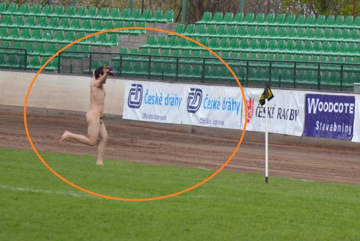 Podle informací přítomného zpravodaje nahatý běžec byl jeden ze zahraničních ragbyových hráčů, kteří přicestovali do Česka za účelem sehrání přátelských utkání s klubovými týmy a při té příležitosti sledovali cizinci i mezistátní utkání Česko - Lotyšsko v rozbujené náladě.