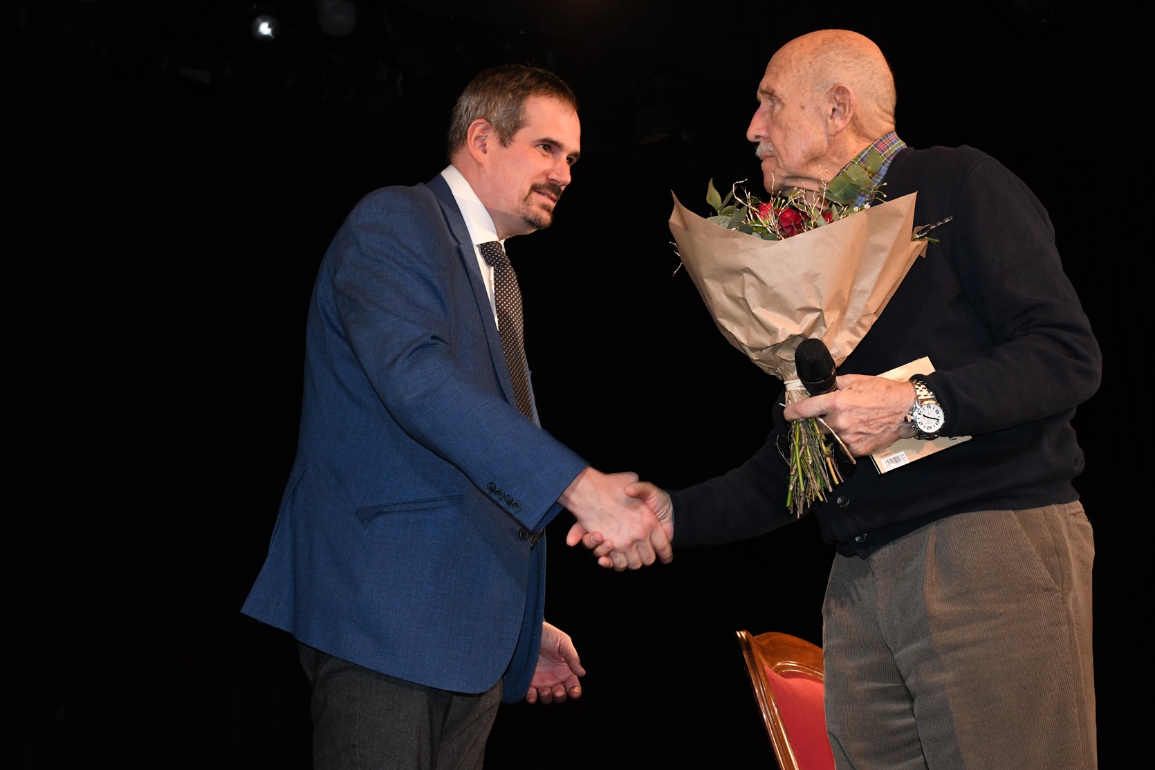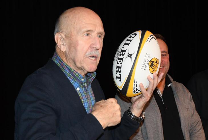 Herec Petr Nárožný, který v roce 2023 oslavil pětaosmdesátiny, během svého představení vzpomenul také na to, jak začal hrát ragby.