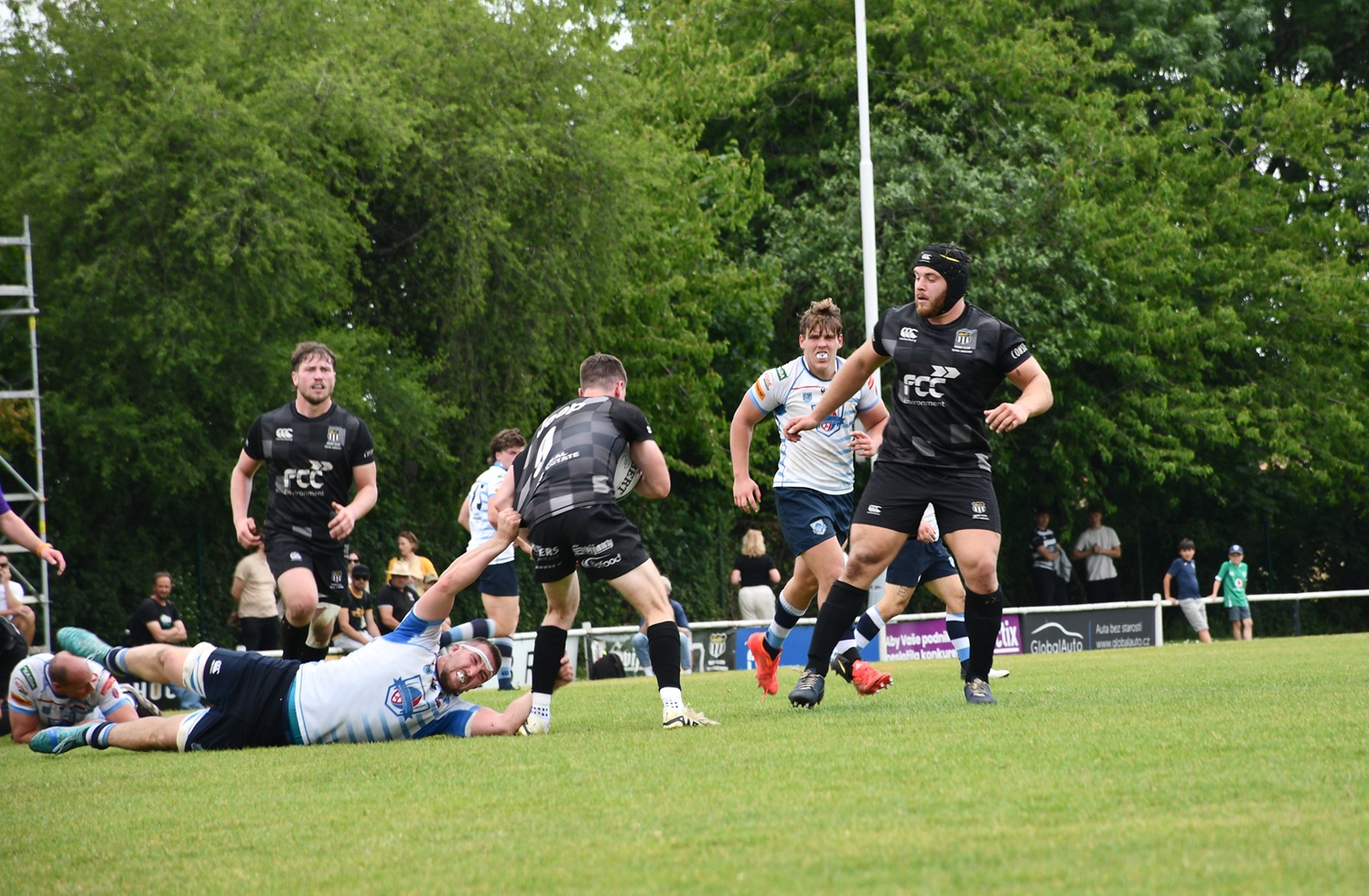Patrně nejdůležitější ragbyový zápas pololetí 2025 zahájili položenou pětkou ragbisté Říčan již v první minutě hry, kdy se po překopu Jana Šedivého rozeběhl do tatrováckého brankoviště Martin Novák, po jehož pětce následný kop proměnil Horak. Říčany vedly ještě v 21. minutě, ovšem po položené pětce a následném kopu Tatry bylo vyrovnáno a po 28. minutě po další již druhé Adamem Koblicem položené pětce už prohrávaly 10:15. Tak také skončil poločas. Své vedení si už Tatra nenechala vzít. Po poločasu se prosazovali oba kopáči německý reprezentant ve službách Tatry Nicholas Hoyer, který zatížil skore soupeře celkově 17 body za 5 proměněných všech trestných kopů které kopal a jednoho ze dvou kopů po pětce a říčanského Tristana Horaka za dvě proměněné ze tří kopaných penalt a dva tedy oba kopy po pětce.