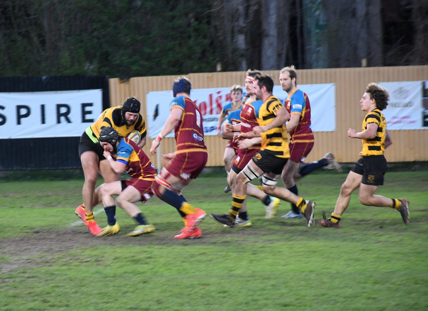 Do utkání však vlítli úspěšně položenou pětkou v první minutě hráči Pragy, kteří vedli 7:0 a od té doby už v tomto utkání neprohrávali. Jenže Sparta brzo vyrovnala a bylo jasné, že diváci, kteří se přišli na derby podívat, sledují po čase opět jeho dramatický průběh, ve kterém se rozhodne o vítězné ragbyové patnáctce třeba až v poslední minutě. Pak Praga opět získala další body za položené pětky, ale ragbisté Sparty na konci poločasu vyrovnali a tak na ukazateli skore svítila tato čísla 24:24.