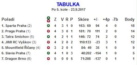 Vyškov - Tatra Smíchov 24:30 (5:15) pětky 4:5