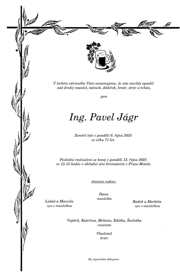 Ing. Pavel Jágr * 1954 + 6. října 2025