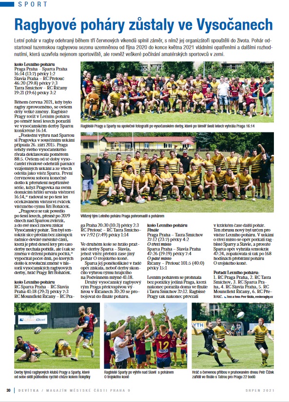 Ragbisté Pragy po téměř šesti letech porazili ve vysočanském derby Spartu 16:14