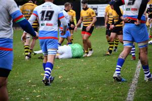 Rozhodčí Jaroslav Bednařík se sám ocitl při utkání Praga - Říčany v mlýnici mezi ragbisty