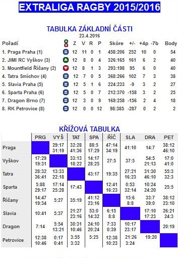 23.4.2016: Extraliga - výsledky,tabulka (12.kolo) Muži 15´