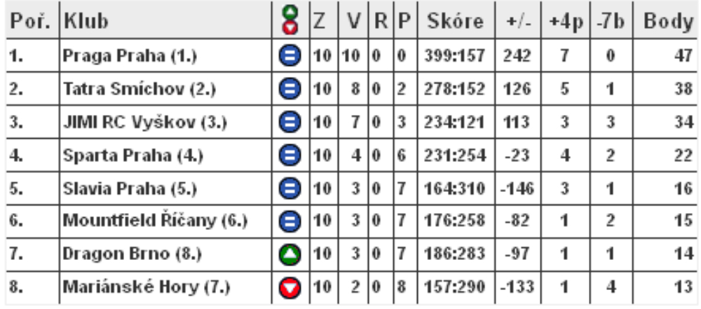 22.3.2015: Extraliga - výsledky,tabulka (10.kolo) Muži 15ˇ