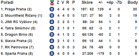 Praha 26. září 2015 * Praga Praha - Sparta Praha 88:5 (45:5) * pětky 14:1