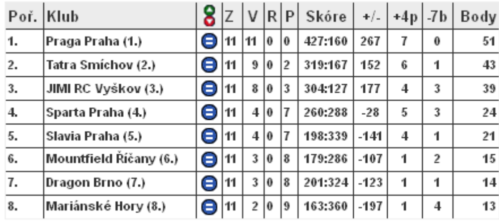 Výsledky 11.kolaTatra Smíchov - Dragon Brno 41:15 (10:0) pětky 7:0