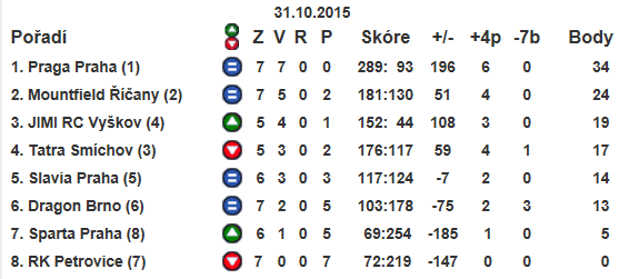 31.10.2015: Extraliga - výsledky,tabulka (7. kolo) Muži 15´
