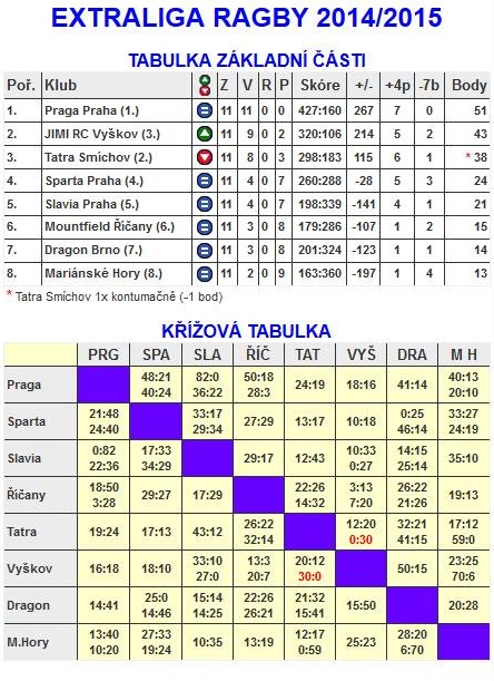Opravená tabulka extraligy po rozhodnutí o kontumačním výsledků Vyškov - Tatra 30:0