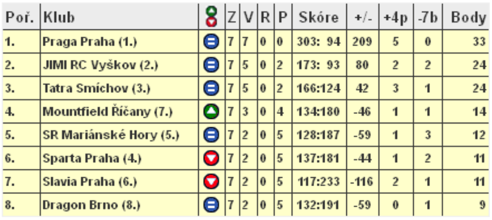 RC Dragon Brno - RC Praga Praha 14:41 (7:22) Pětky 2:7