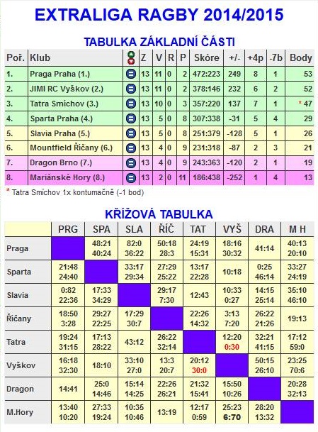 2.5.2015: Extraliga - výsledky,tabulka (13.kolo) Muži 15ˇ