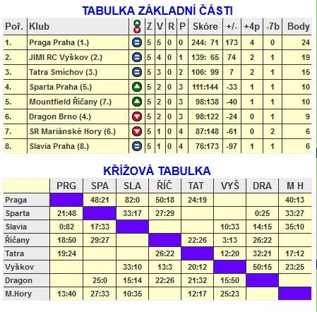 Tatra Smíchov - Praga Praha 19:24 (6:10) pětky 1:2