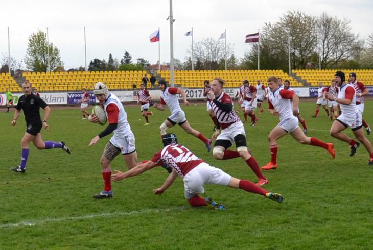 Soupeřem českého týmu bylo Lotyšsko, které papírově nebylo v zápase favoritem. Tak to vypadlo i na hřišti. Čeští ragbisté od páté minuty vedli rojníkem Loutockým položenou pětkou. Do půle stačilo Česko položit ještě dvě další pětky s následným prokopem, z toho jedna pětka byla trestná a soupeř se zmohl jen na úspěšný trestný kop.