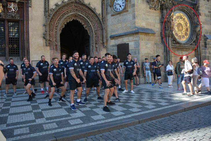 Tím se samozřejmě na místě, kde lidé čekávají si prohlížet apoštoly na orloji, na chvíli zastavil turistický ruch. Po vystoupení s Hakou návštěvníci Prahy tak využili ragbisty ke společným fotografiím s nimi, netušíce, že ti kluci nejsou úřadujcí mistři světa, ale jen výběr složený z novozélandských ragbistů, kteří se pohybují po Evropě a i mimo ní.