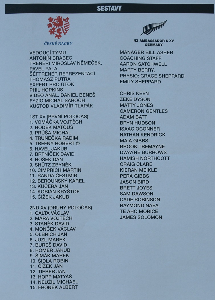 Česko - New Zealand Ambassador’s XV 0:43 ( (0:26)
