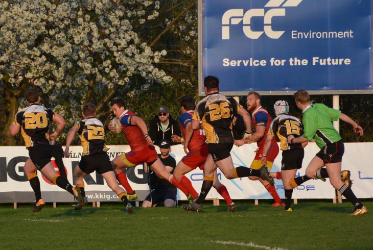 V exhibičním utkání první pětku sice položili domácí ragbisté po akci roje, když se protlačil do brankoviště soupeře mlynář Ondřej Kutil, ale soupeř si brzo převzal vedení útokem položenou pětkou. Zápas byl v první půli vyrovnaný, což dokázal odchovanec Pragy útočník Jakub Žalud, když jej po desetimetrovém běhu hráči soupeře zadrželi až ve svém brankovišti. Jenže do půle se podařilo výběru hráčů z ragbyových velmoci položit další pětku a po ní i navýšit následným kopem na 10:17. Jiří Pantůček už do přestávky stačil trestným kopem snížit na 13:17.