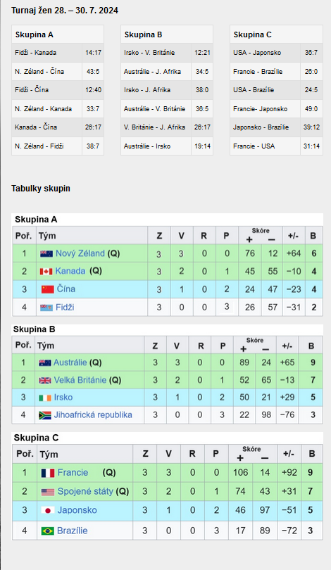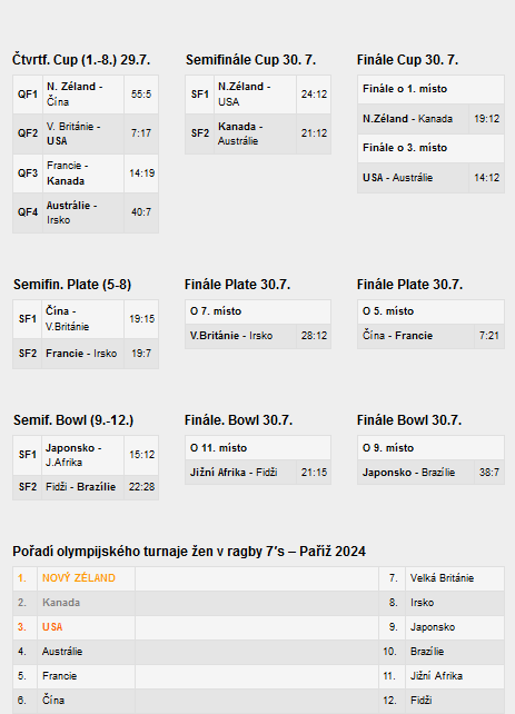 Kanada ziskem stříbra navázala na bronz z Ria, americké ragbistky získaly premiérovou bronzovou medaili.
