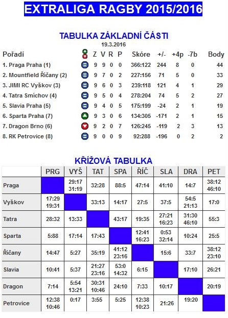 Zrcadlo výsledků dohrávek ragbyové extraligy