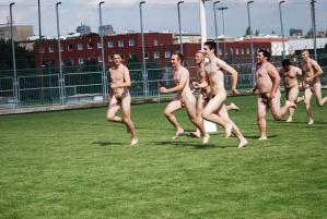 Aktualizováno 9. září 2012. Před koupelí se ještě borci z Lucemburska nazí proběhli po hřišti a tím nalnili sázku. Mezi diváky v hledišti sice už byly jen dvě dívky, které si nečekaného vykl...