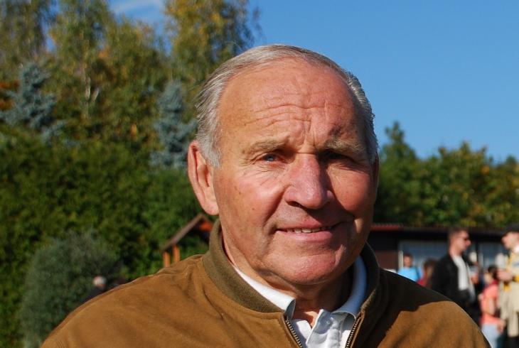 Eduard Krützner starší při výkopu před ligovým utkáním v týdnu roku 2010, kdy mu bylo 75 let ( foto: Petr Skála)