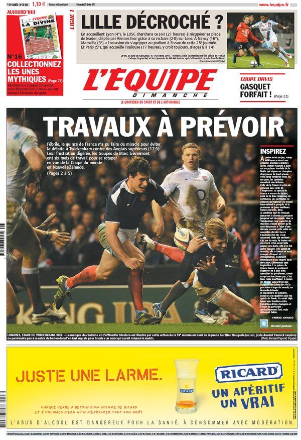 Po poločase, který skončil plichtou 9:9, hned z prvního útoku položili domácí borci rozhodující pětku. Francouzi, přestože útočili a byli také hodně blízko k bodování, už bodový náskok domácích borců nedohnali. Francouzský sportovní deník L´Equipe následný den marnost Francouzů dokumentoval fotografií z jejich nevyužité šance. Nakonec se miláček příznivců anglického ragby při utkání s Francií střídající Jonny Wilkinson dalším proměněným kopem na jediný bod přiblížil rekordu v počtu bodů dosažených v reprezentaci. Johny jich má aktuálně 1187 a Novozélanďan Daniel Carter 1188. "Bylo to parádní vyrovnané ragby, při kterém Francii chybělo štěstí," líčil své dojmy po utkání znalec francouzského ragby Jiří Štuksa.