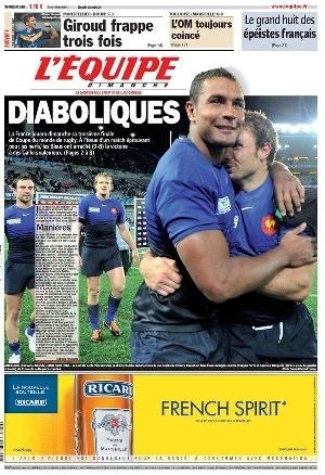 Titulkem "Ďáblové," lákalo na titulní straně nedělní vydání francouzského sportovního deníku L´Equipe ke čtení sedmi stránek původního zpravodajství z Nového Zélandu.